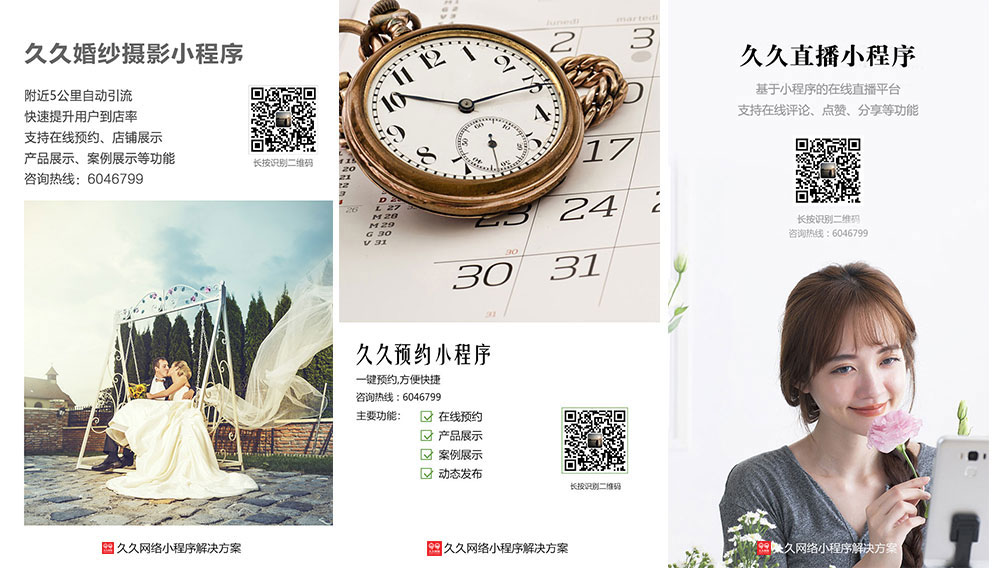 大慶久久網(wǎng)絡(luò )科技有限公司,憑借16年對大慶網(wǎng)站建設、微信公眾號開(kāi)發(fā)、軟件開(kāi)發(fā)的實(shí)戰技術(shù)經(jīng)驗,以及對市場(chǎng)的了解和分析,為不同的行業(yè),根據經(jīng)營(yíng)方式的差異性,量身定制了大慶小程序開(kāi)發(fā)策劃方案,滿(mǎn)足不同的客戶(hù)的應用需求。
