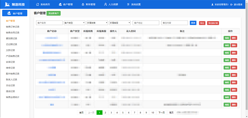 炯浩科技內部管理系統實(shí)現客戶(hù)管理、銷(xiāo)售訂單管理、銷(xiāo)售合同管理、要到期記錄、已過(guò)期記錄、欠款記錄、產(chǎn)品銷(xiāo)售記錄、安裝記錄、維修記錄、配件銷(xiāo)售記錄、聯(lián)系人記錄、交往記錄、銷(xiāo)售提成、銷(xiāo)售業(yè)績(jì)統計、財務(wù)記錄、財務(wù)統計、員工管理、員工工資管理等功能需求。